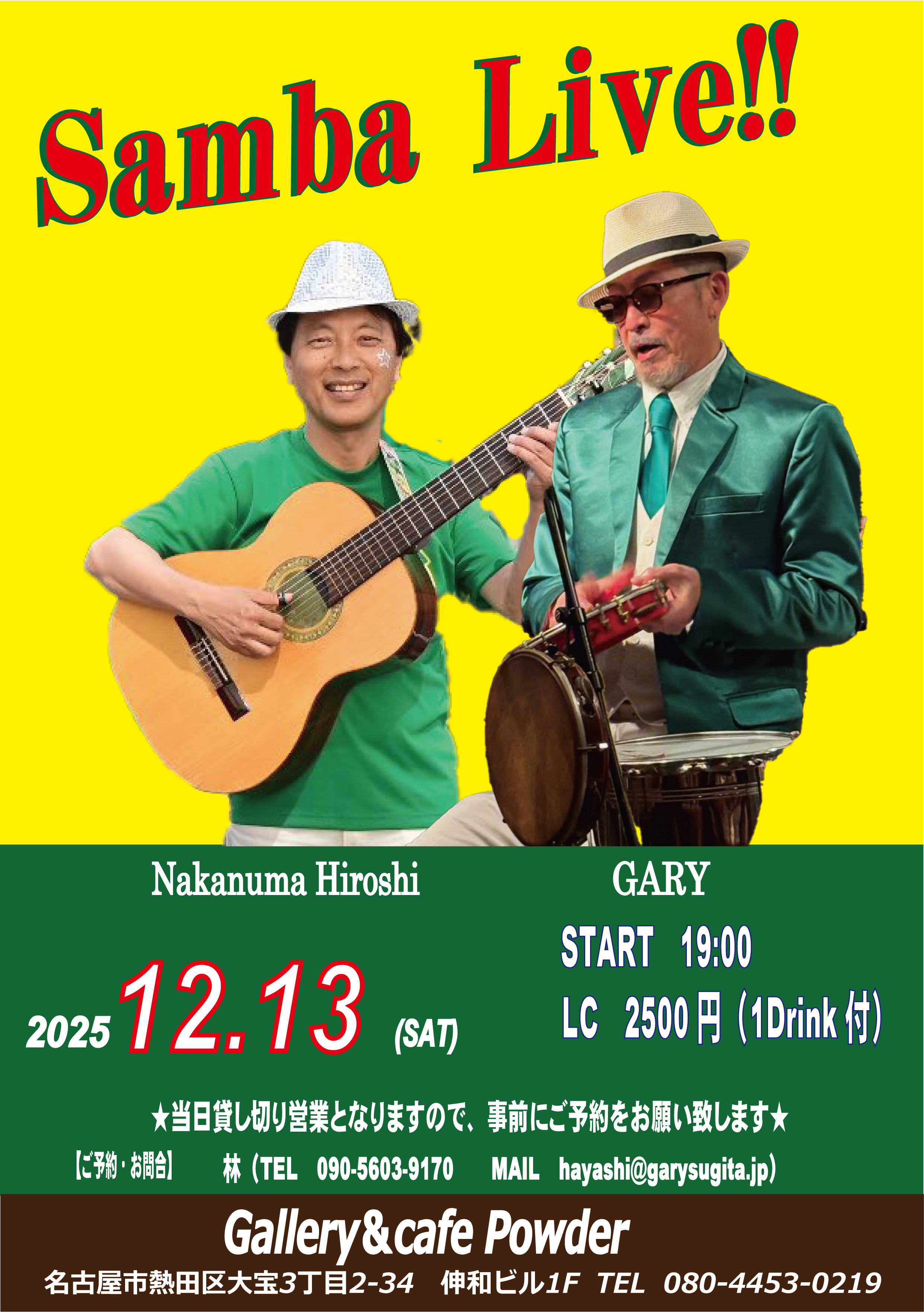 | 13日(土) | ライブ@パウダー(名古屋) | ||