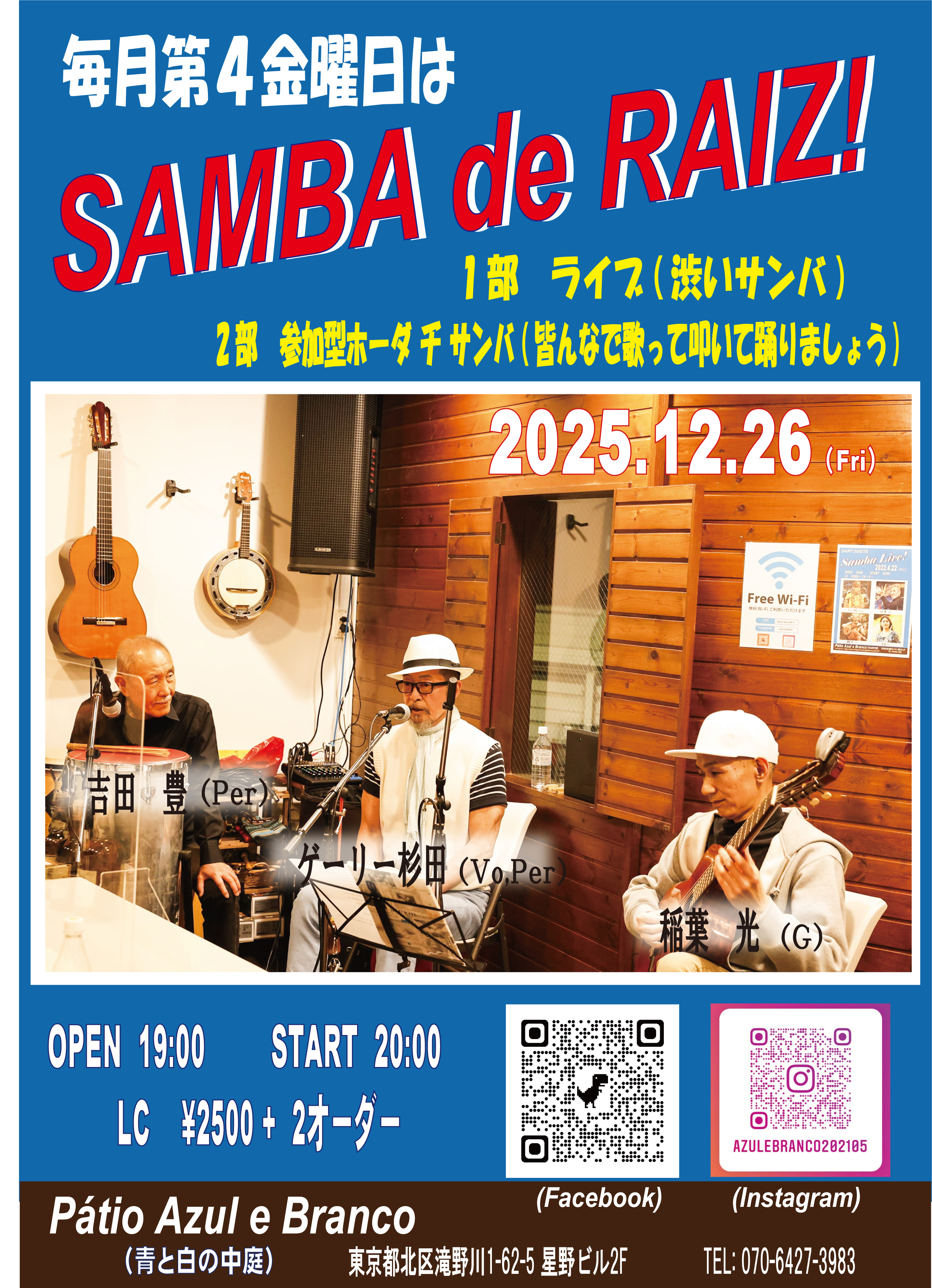 | 26日(金) | 20:00 | ライブ@Pátio Azul e Branco(東京) | |