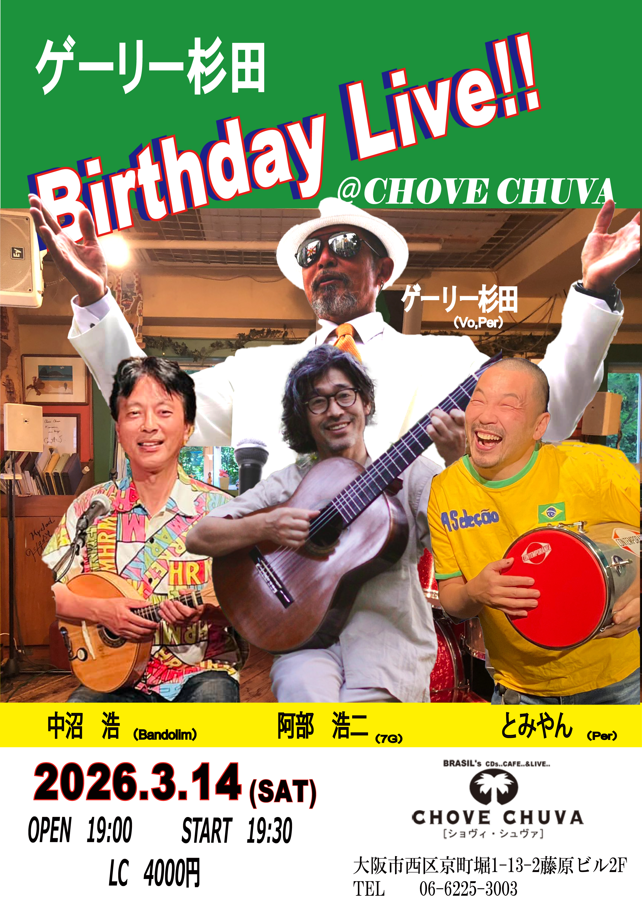 | 27日(金) | 20:00 | ライブ@Pátio Azul e Branco(東京) |