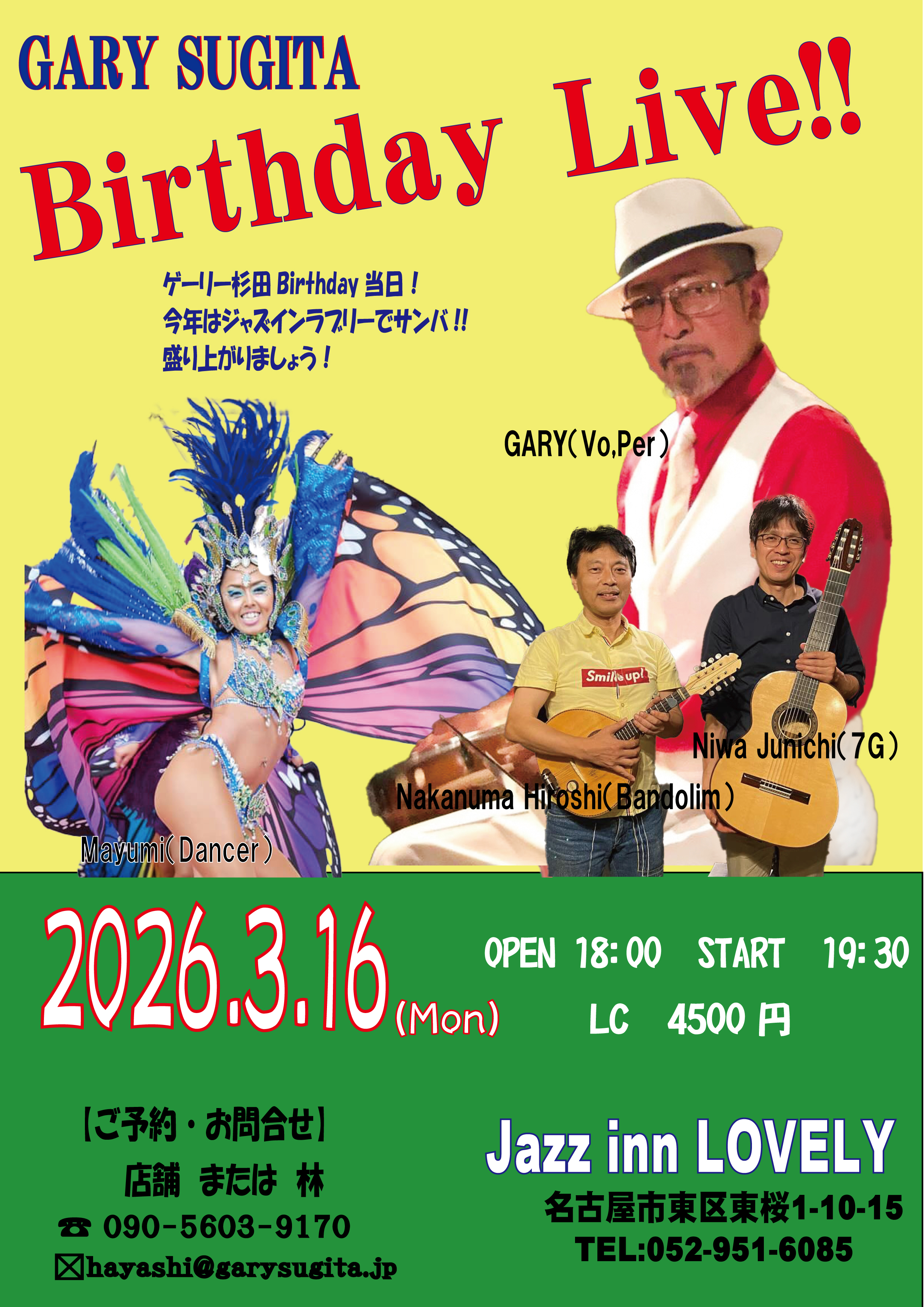 | 16日(月) | Jazz inn Lovely(名古屋) | ||