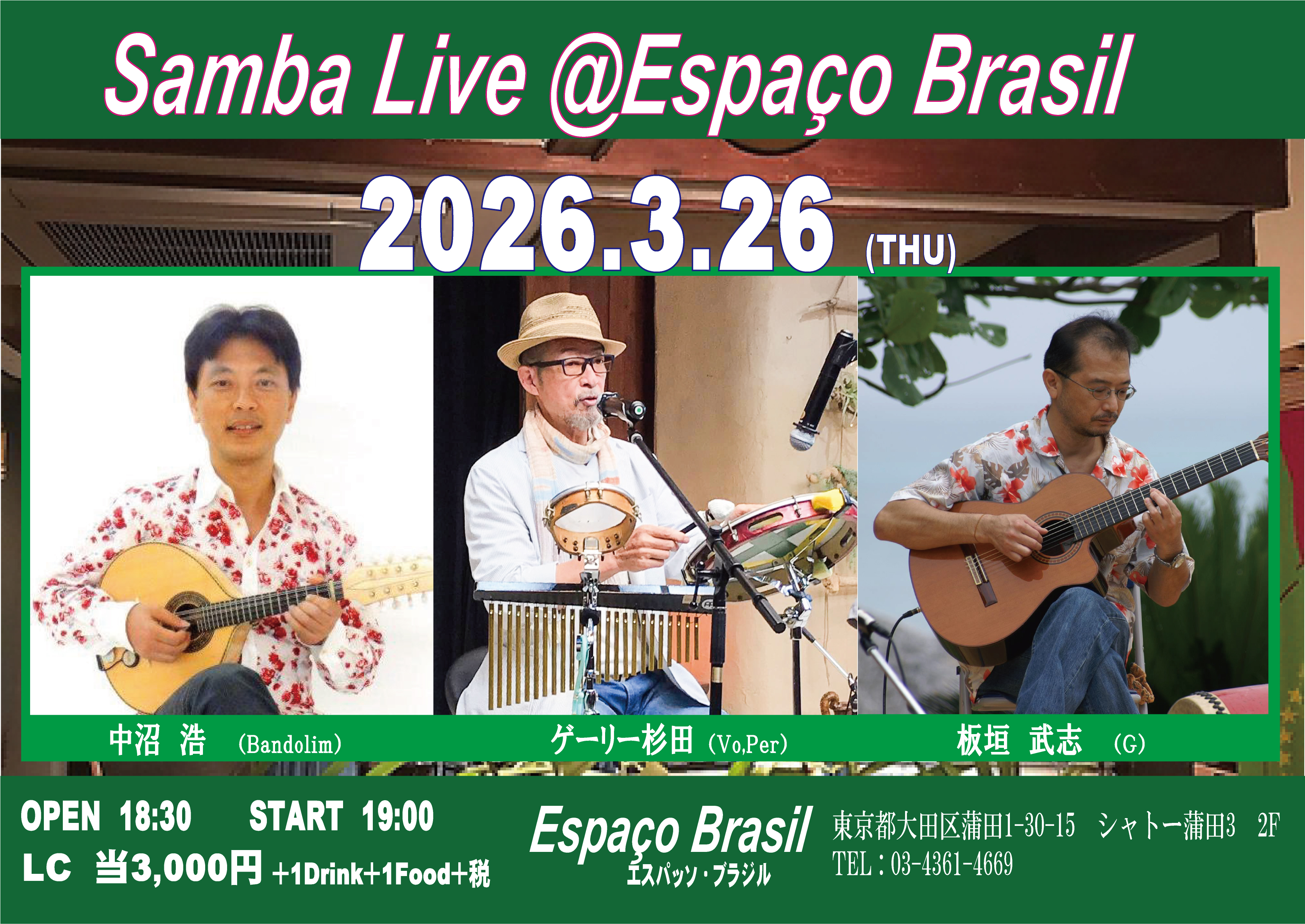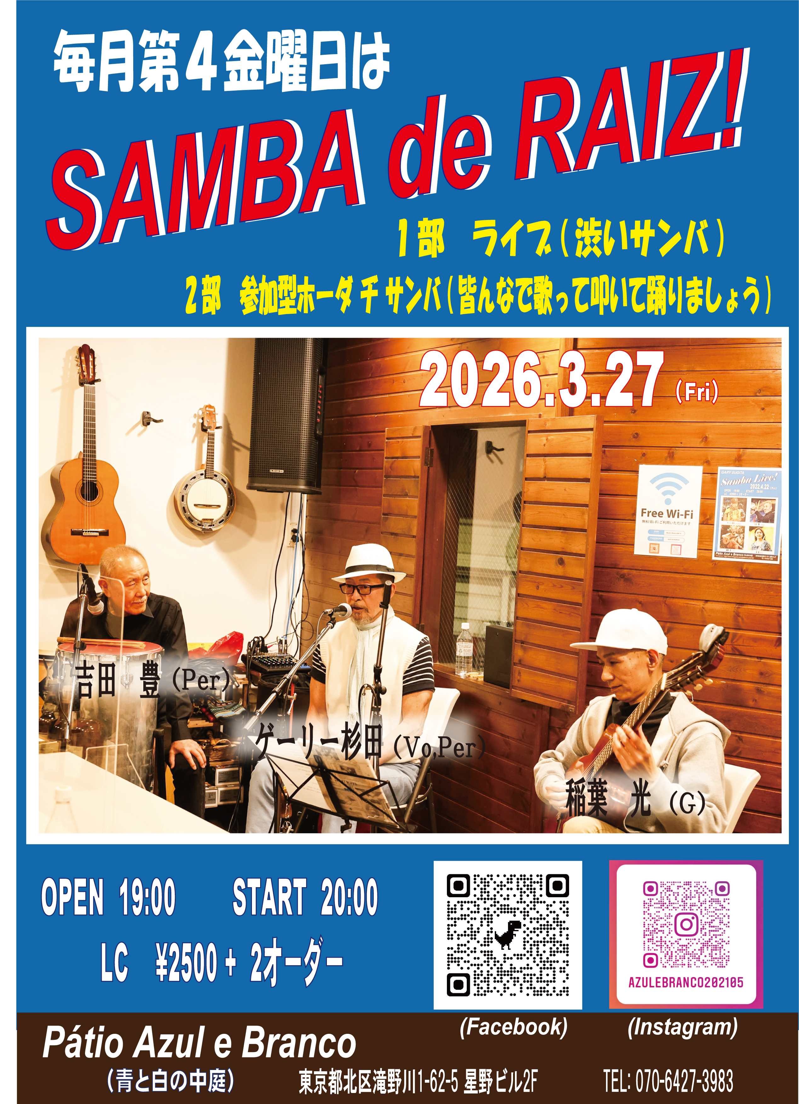 | 27日(金) | 20:00 | ライブ@Pátio Azul e Branco(東京) |